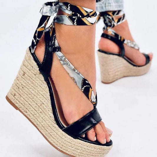 Inello, Riva kilehæl espadrille - sort