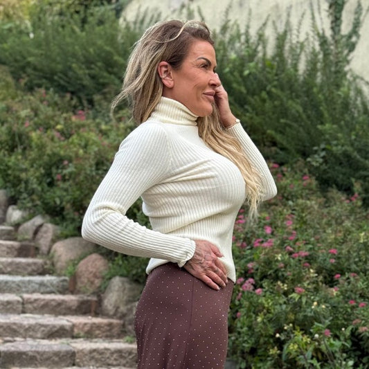 NyhedRosy Days, Ivory ribbed knit turtleneck sweaterForhandler:Rosy DaysSe detaljerNormalpris 169,00 DKKNormalprisStykpris pr.-