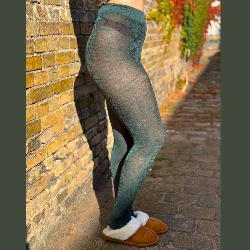 De her strømpebukser fra Festival – Hitzi Green – er til dig, der elsker lidt ekstra kant i dit outfit. Det grønne, broderede mønster giver et feminint, men samtidig friskt udtryk, som skiller sig ud på den helt rigtige måde.