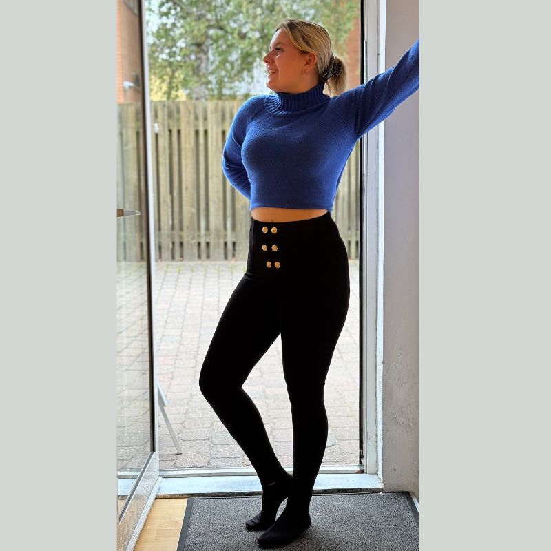 Forestil dig et par leggings, der både føles lækre at have på og samtidig giver dit outfit et elegant løft. Sevilla leggings er højtaljede og lavet i et elastisk materiale, så de sidder tæt og fremhæver din figur uden at gå på kompromis med komforten. Foran finder du de fine guldfarvede dobbelte knapper, som giver et feminint og sofistikeret twist – perfekt til dig, der elsker små detaljer, der gør en forskel.